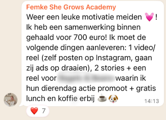 ‘Me 2de betaalde samenwerking binnen van 600 euro + producten!’