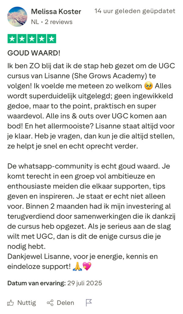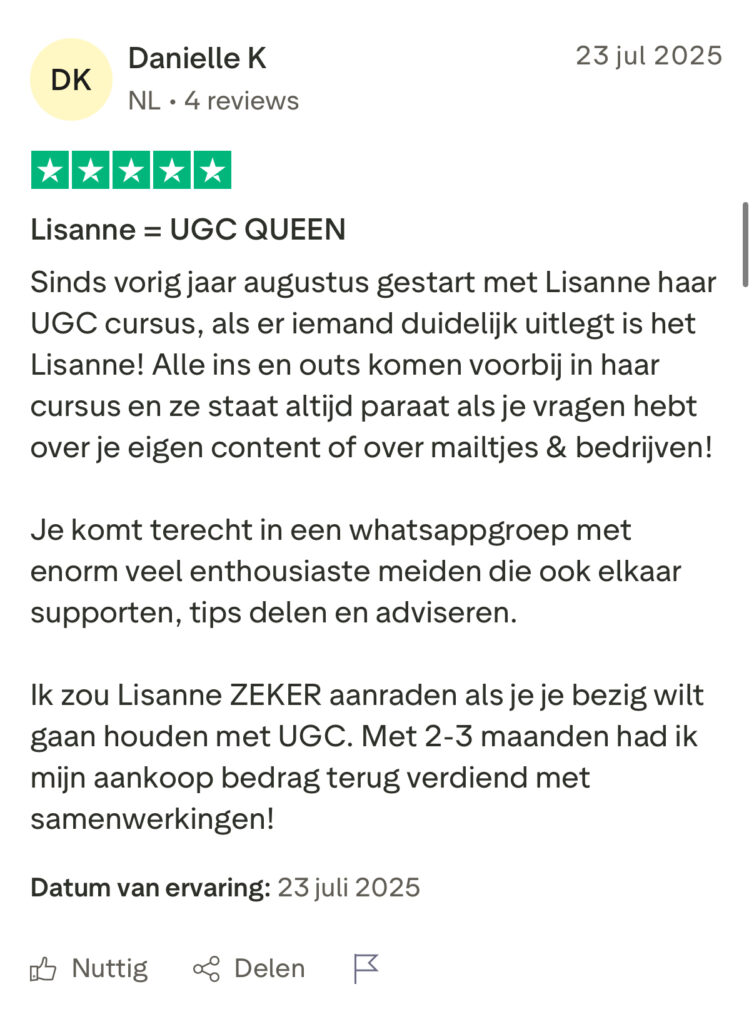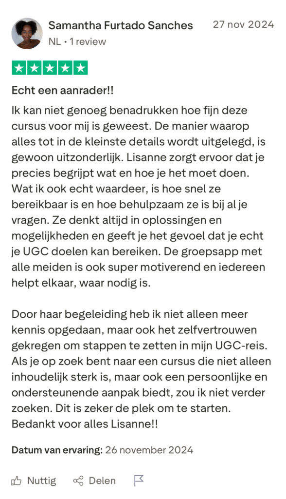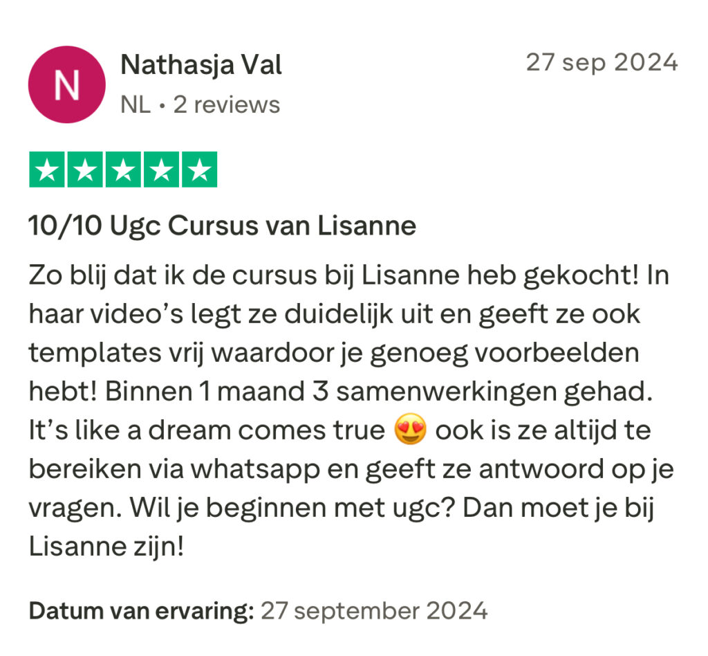 Inmiddels heb ik al meer dan 500 vrouwen succesvol geholpen bij het opzetten van hun UGC-business. Ben jij de volgende?